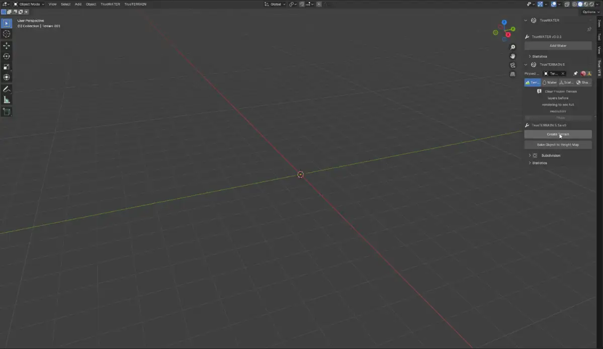 • Hit the Create Terrain button — and just like that, your base terrain is in the scene!