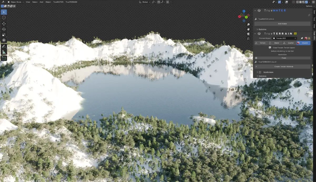 Terrain, Water, Scatter, and Materials — one system, thousands of possibilities.Shape landscapes, add natural water, populate with assets, and texture everything in just a few clicks. All fully connected. All built to work together.